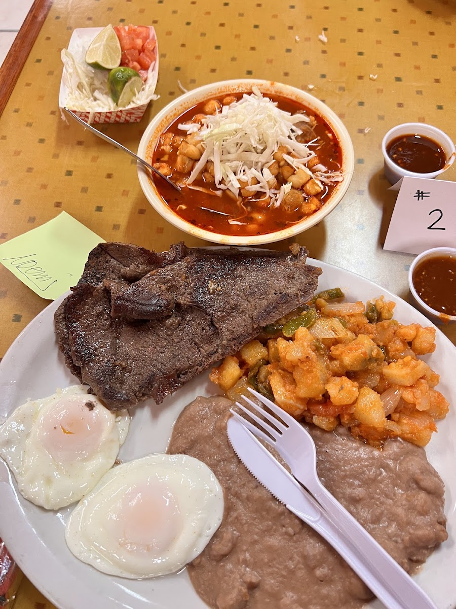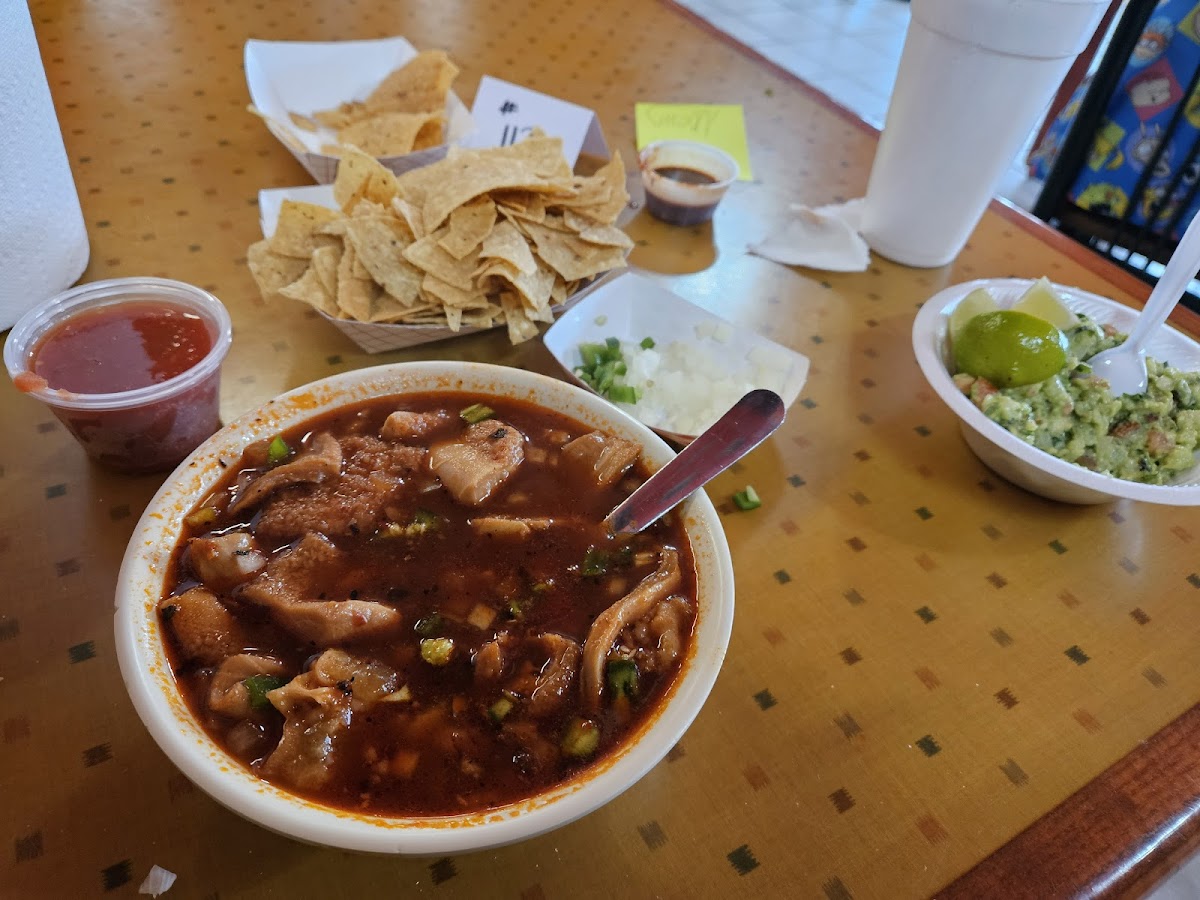 The menu is focused on classic dishes that stretch beyond the typical taco joint, featuring items like Menudo, Barbacoa Tacos de Lengua, and breakfast burritos loaded with chorizo and eggs. Many visitors come early on weekends to enjoy bowls of pozole or menudo, dishes that require an appetite for traditional Mexican flavors and a bit of patience for the slow-cooked depth they offer. Those looking for a late breakfast or early lunch will find a selection that includes enchiladas with green sauce, chile relleno plates, and potato flautas served with rice and beans—meals that feel hearty enough to fuel a weekend around town or a casual weekday break.