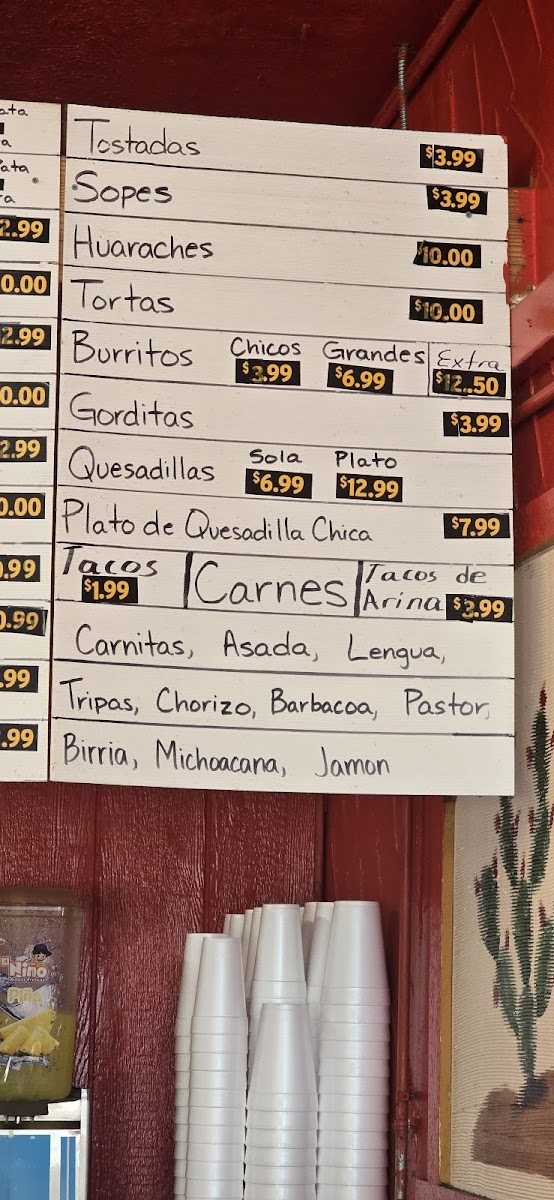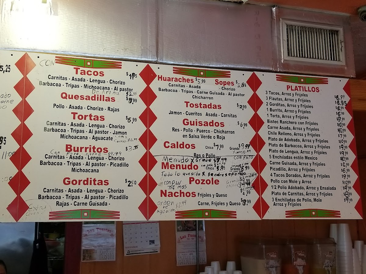 The menu at Las Fuentes Taqueria features a variety of traditional Mexican and Latin American dishes, with a strong emphasis on breakfast and classic Mexican offerings. It is organized into several main groups to accommodate different meal preferences throughout the day.